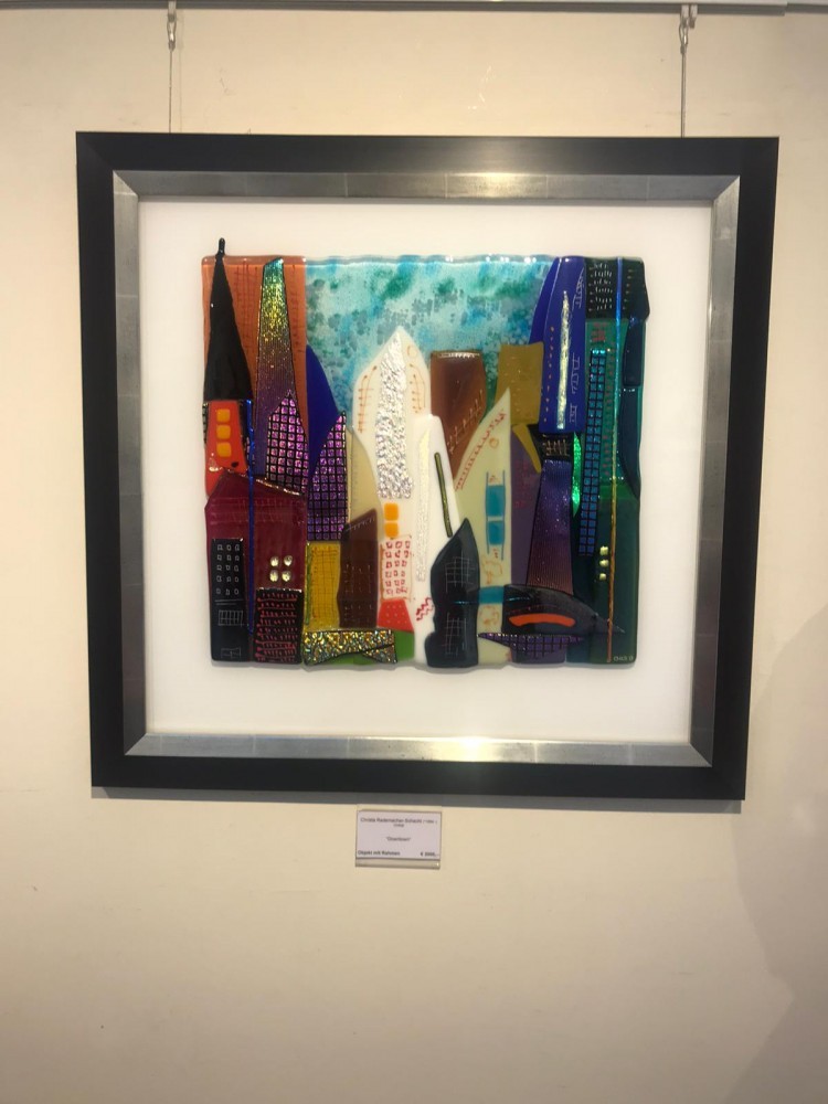 Bei der Motivauswahl lässt die Künstlerin ihrer Fantasie freien Lauf. Neben improvisierten Städtebildern findet man kunstvoll gestaltete Portraits, angedeutete Landschaften und einen imaginären Rhythmus folgende Konstrukte. Der faszinierende Werkstoff Glas wird durch Licht in seiner Wirkung unterstützt und verleiht den Objekten eine fast sakrale Aura.